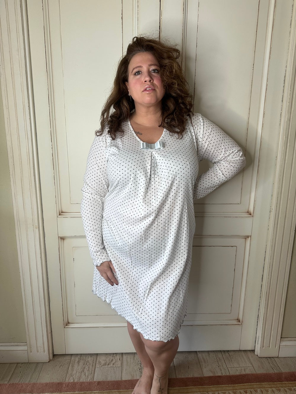 Camicia Cuori Manica Lunga Scollo V